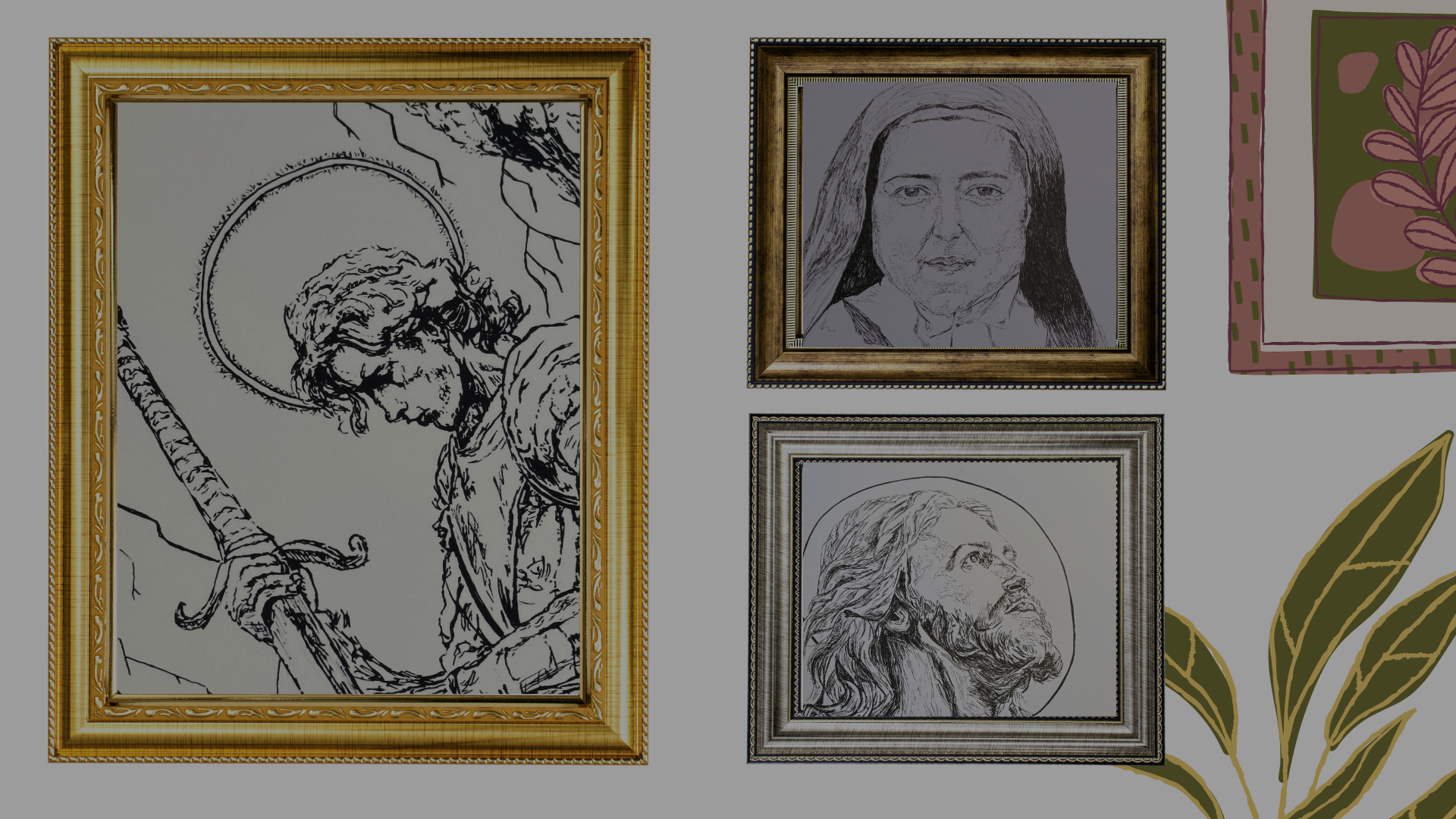 Each month, you’ll receive two fine art prints of a Studio Novena Catholic drawing or painting —created to help you foster deeper devotion and beauty in your home and community. Every mailing includes one print and one postcard featuring devotional artwork, designed to bring heaven into your home and to send to someone who could use encouragement, prayer, or a touch of beauty in their day.